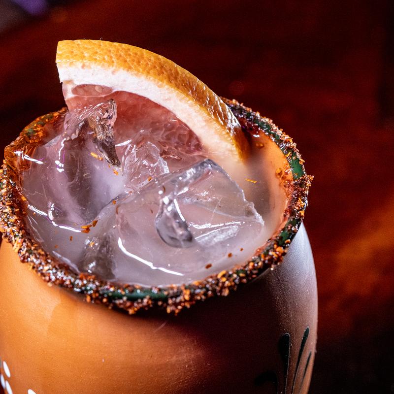 Mezcal joven, pineapple, chile morita syrup, tajin rim.